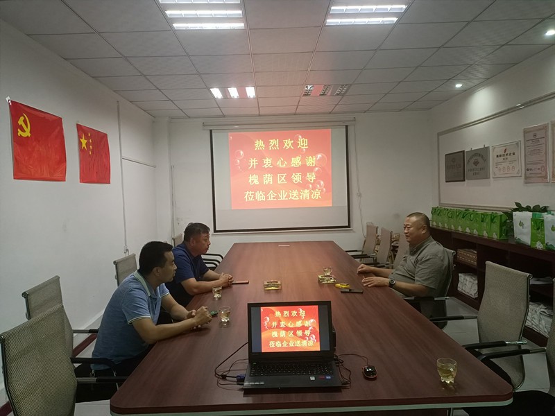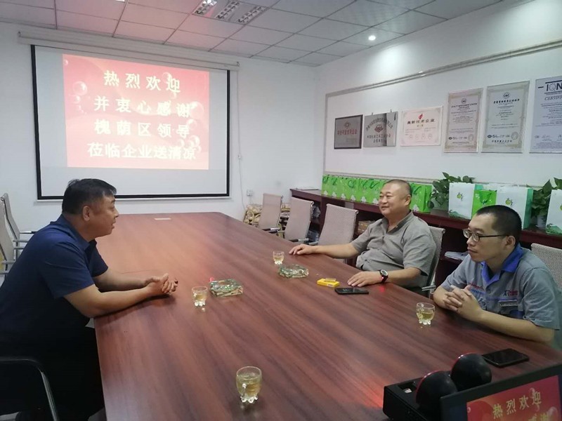 8月19日上午,受槐蔭區(qū)領(lǐng)導(dǎo)委托,槐蔭區(qū)工信局副局長(zhǎng)惠健一行蒞臨公司進(jìn)行夏季送清涼活動(dòng)。公司董事長(zhǎng)徐福厚、董事會(huì)秘書兼辦公室主任王德華熱情接待了惠健副局長(zhǎng)一行。